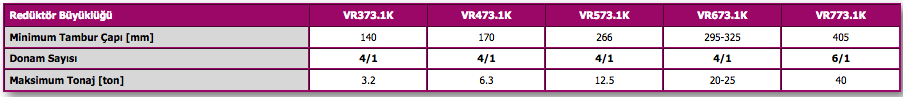 YILMAZ REDÜKTÖR V serisi redüktörleri monoblok gövde prensibine göre üretilen, helisel dişli, üç kademeli vinç tamburu tahrik redüktörleridir. Monoblok gövde yapısı sayesinde gövde eksenleri tek operasyonda işlenerek yüksek imalat hassasiyeti sağlanmaktadır. V serisi redüktörlerde civata bağlantısı direkt gövde üzerindeki kulaklardan yapılmaktadır. Uzun saplama veya civata gerektirmez. Bu sayede yapılan bağlantı daha rijittir. Giriş ve çıkış eksenleri olabildiğince açık tutulmuştur. Yüksek halat ömrü için büyük çaplardaki tamburların kullanılabilmesi amaçlanmıştır. V serisi redüktörlerde çıkış mili yataklama boyu uzun, gövde eni geniştir. Yüksek yataklama boyu ve konik masuralı rulmanların kullanılması ile redüktörün radyal yük taşıma kabiliyeti artırılmıştır. Redüktör içerisinde kullanılan geniş dişliler sayesinde daha küçük hacimde daha yüksek ISO / FEM sınıfları karşılanabilmektedir. GG20 – GG22 pik malzemeden dökülen gövde ve yüksek kalitede taşlanmış ve sertleştirilmiş sementasyon çeliği dişliler kalite kontrol sistemi altında sürekli kontrol altında tutularak imal edilebilmektedir. Çıkış milleri DIN 5480’e göre farklı ölçülerde çoklu kamalı olarak üretilmektedir. Müşteri isteğine göre çift veya tek devirli, frenli motorlarla kullanılabilmektedir. Beş adet gövde büyüklüğüne sahip V serisi redüktörler 0,5 – 50 aralığında tonajlar için kullanabilmektedir